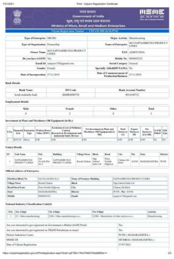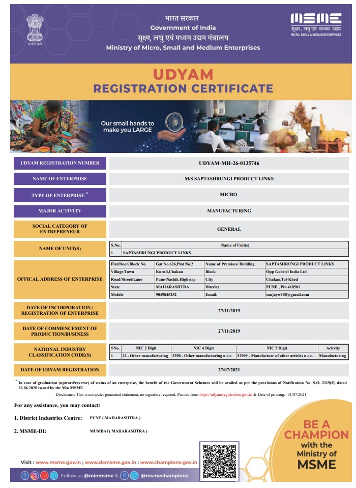 We take this opportunity to introduce ourselves as “Saptashrungi Product Links” an engineering unit engaged